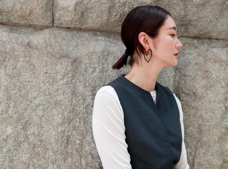 大きめ同士のハートモチーフだとどうしてもインパクトが多き過ぎる為、形違いで小さめの歪なハートモチーフでベストなバランスを。